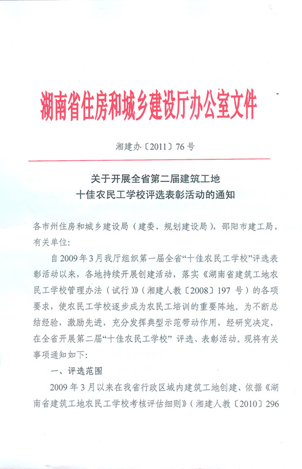 2011年十佳農(nóng)民工學(xué)校評(píng)選通知