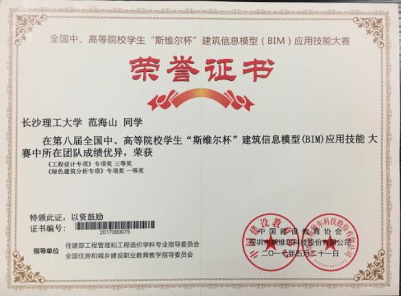 5月20日-21日,由中國建設(shè)教育協(xié)會主辦,住建部工程管理和工程造價學(xué)科專業(yè)指導(dǎo)委員會、全國住房和城鄉(xiāng)建設(shè)職業(yè)教育教學(xué)指導(dǎo)委員會指導(dǎo)協(xié)辦的第八屆全國中、高等院校學(xué)生“斯維爾杯”建筑信息模型(BIM)應(yīng)用技能大賽在杭州和長春兩個賽區(qū)聯(lián)網(wǎng)同步舉行,長沙理工大學(xué)由付果、李傳習(xí)、胡敏、何競昌等老師指導(dǎo)的學(xué)生馬振旺、葉俊辰、黃杰、范海山和楊卓棟組成的“長理施工隊”,經(jīng)過激烈角逐,最終斬獲綠色建筑分析一等獎、工程設(shè)計三等獎。