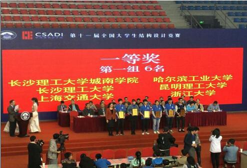 本屆大賽由中國高等教育學(xué)會工程教育專業(yè)委員會、高等學(xué)校土木工程學(xué)科專業(yè)指導(dǎo)委員會、中國土木工程學(xué)會教育工作委員會和教育部科學(xué)技術(shù)委員會環(huán)境與土木水利學(xué)部共同主辦,由各?。ㄊ校┙逃龔d(住建廳)組織本省高校承辦?。ㄊ校┓謪^(qū)賽、武漢大學(xué)承辦全國總決賽。大賽是教育部確定的全國九大大學(xué)生學(xué)科競賽之一,是土木工程學(xué)科培養(yǎng)大學(xué)生創(chuàng)新精神、團(tuán)隊意識和實(shí)踐能力的最高水平學(xué)科性競賽,被譽(yù)為土木皇冠上最“璀璨的明珠”。今年,長沙理工大學(xué)在該項賽事上再次奪冠,是繼去年獲評全國唯一特等獎后成功衛(wèi)冕,也是該項賽事上全國首個衛(wèi)冕冠軍,再次改寫了由非“985”工程、“211”工程高校奪冠的歷史。