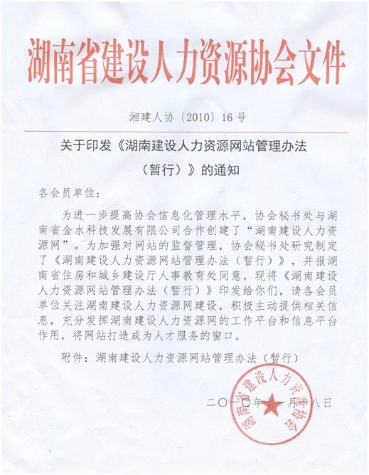 關(guān)于印發(fā)《湖南建設(shè)人力資源網(wǎng)站管理辦法(暫行)》的通知