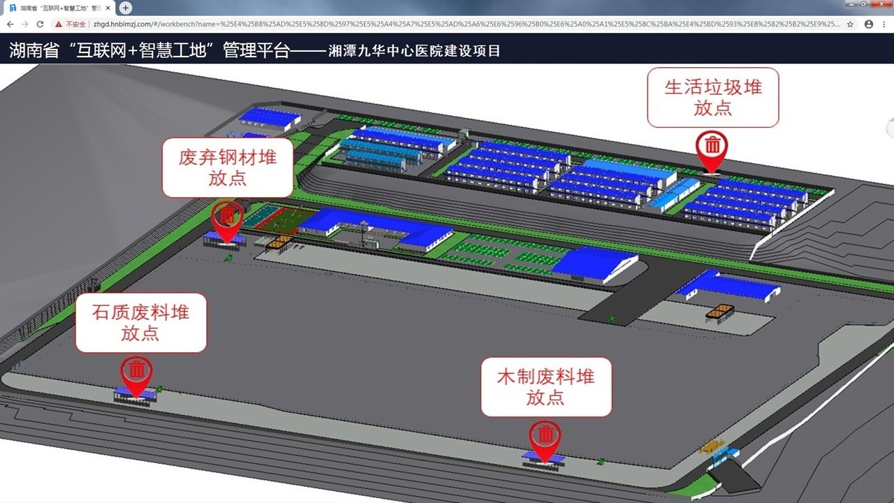 通過BIM的進(jìn)度模擬確定施工各階段的主要垃圾類型,避免二次搬運確定各類垃圾的堆放位置,并在GIS地圖上進(jìn)行精確定位。