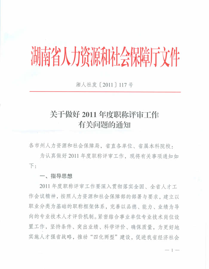 關(guān)于做好2011年度職稱評審工作有關(guān)問題的通知