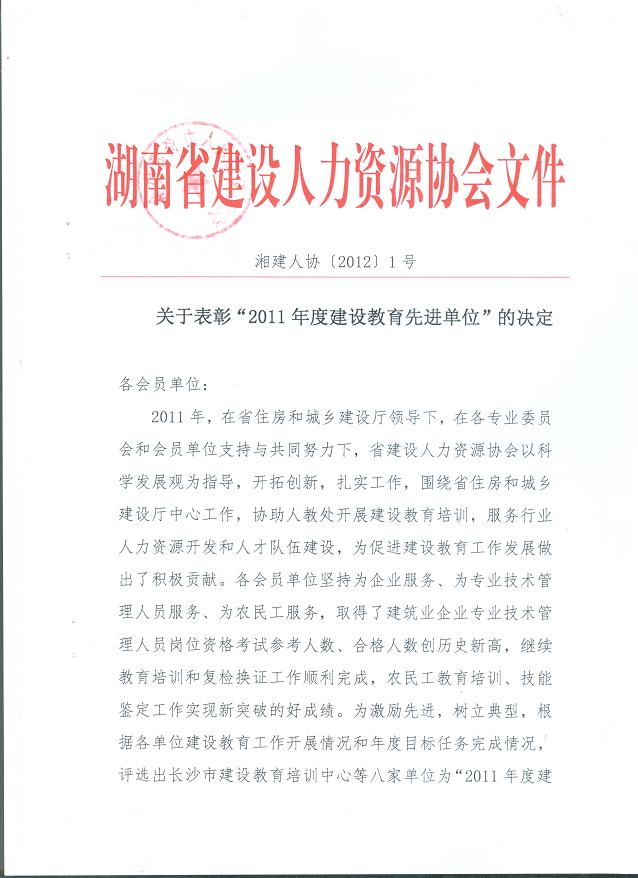 關(guān)于表彰“2011年度建設(shè)教育先進(jìn)單位”的決定