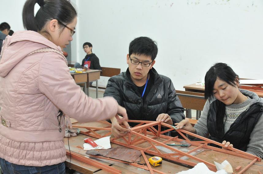 由省教育廳、省住房和城鄉(xiāng)建設(shè)廳共同主辦,省建設(shè)人力資源協(xié)會(huì)和湖南城市學(xué)院共同承辦,湖南悍馬建設(shè)工程有限公司協(xié)辦的湖南省第二屆大學(xué)生結(jié)構(gòu)設(shè)計(jì)競賽于2013年12月6日—9日在益陽隆重舉行。本次競賽吸引了來自全省16所高校和7所獨(dú)立學(xué)院的55支代表隊(duì)參加,經(jīng)過緊張的比賽和專家評(píng)委組認(rèn)真評(píng)選,長沙理工大學(xué)、吉首大學(xué)、湖南城市學(xué)院的4支代表隊(duì)獲得一等獎(jiǎng),其中,吉首大學(xué)還獲得了參加第8屆全國大學(xué)生結(jié)構(gòu)設(shè)計(jì)競賽的資格,湖南科技大學(xué)、長沙學(xué)院等6所高校的7支代表隊(duì)獲得二等獎(jiǎng),湖南大學(xué)等7所高校的11個(gè)代表隊(duì)獲得三等獎(jiǎng),湖南工業(yè)大學(xué)等4所高校獲得創(chuàng)意美觀獎(jiǎng),南華大學(xué)等3所高校獲優(yōu)秀組織獎(jiǎng)。