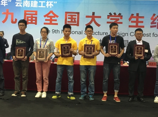 10月18日,為期4天的第九屆全國大學(xué)生結(jié)構(gòu)設(shè)計(jì)競賽在昆明圓滿落下帷幕。長沙理工大學(xué)土木與建筑學(xué)院2013級橋梁工程專業(yè)3名學(xué)子賀文濤、胡偉業(yè)、范景在領(lǐng)隊(duì)肖勇剛副院長親自帶領(lǐng)下,在指導(dǎo)老師付果、楊金花等老師的精心指導(dǎo)下現(xiàn)場設(shè)計(jì)制作的作品——“云影橋”,以優(yōu)異的綜合性能榮獲全國一等獎,同時學(xué)校獲得了全國優(yōu)秀組織獎。