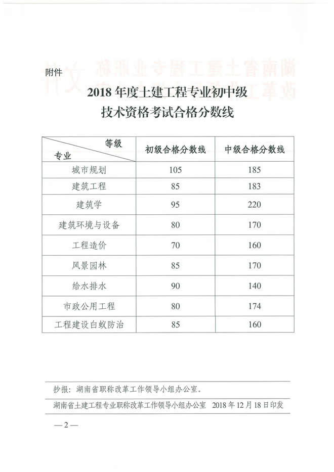 關于公布2018年度土建工程專業(yè)初中級技術資格考試合格分數線的通知