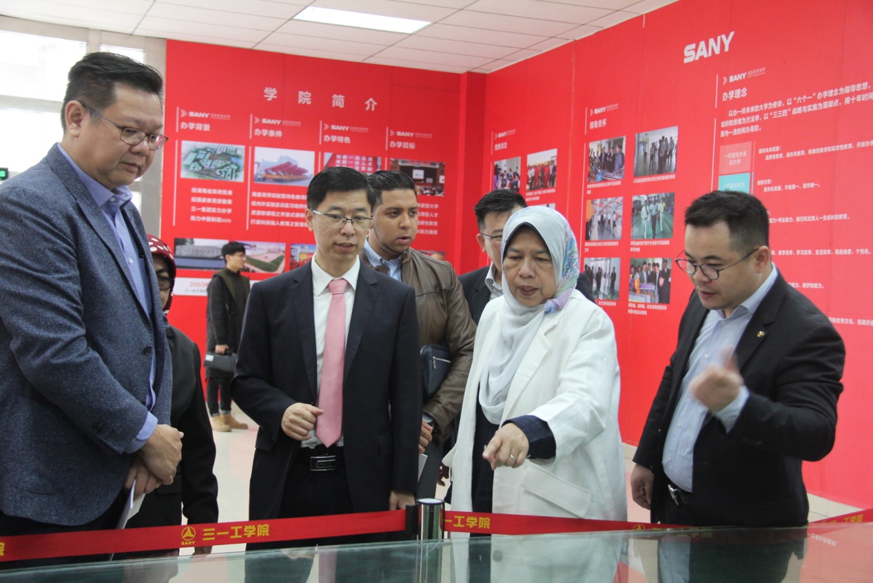 在校史展廳和培訓(xùn)中心,張輝向祖萊達(dá)一行詳細(xì)介紹三一工學(xué)院辦學(xué)歷程、辦學(xué)成果、辦學(xué)理念、發(fā)展規(guī)劃、培訓(xùn)專業(yè)及成果展示等情況。在了解到學(xué)院先后榮獲中國最具價(jià)值企業(yè)大學(xué)、教育部現(xiàn)代學(xué)徒制試點(diǎn)單位、全國唯一新三板掛牌高職院校、全國工程機(jī)械人才培養(yǎng)基地、全國智能制造人才培養(yǎng)基地、全國住宅工業(yè)化人才培養(yǎng)基地、三一集團(tuán)人才培養(yǎng)基地等榮譽(yù)稱號(hào)后,祖萊達(dá)給予高度贊賞和肯定,希望雙方可以開展更多的人才培訓(xùn)交流與合作。