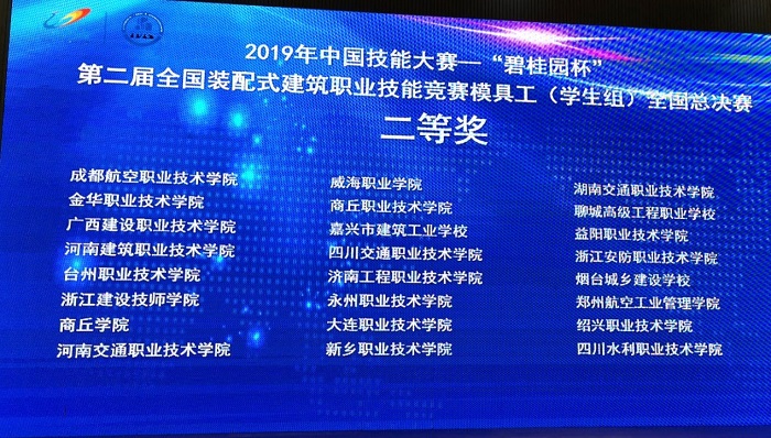 2019年10月29日-31日,由住房和城鄉(xiāng)建設部人事司、人力資源和社會保障部職業(yè)能力建設司指導,中國建設教育協(xié)會、中國就業(yè)培訓技術指導中心、住房和城鄉(xiāng)建設部科技與產業(yè)化發(fā)展中心(住房和城鄉(xiāng)建設部住宅產業(yè)化促進中心)聯(lián)合主辦的2019年中國技能大賽——“碧桂園杯”第二屆全國裝配式建筑職業(yè)技能競賽(學生組)全國總決賽在濟南工程職業(yè)技術學院圓滿舉辦。全國總決賽共有79支代表隊158名選手同臺競技,我省選派出8支代表隊16名選手參加全國總決賽。