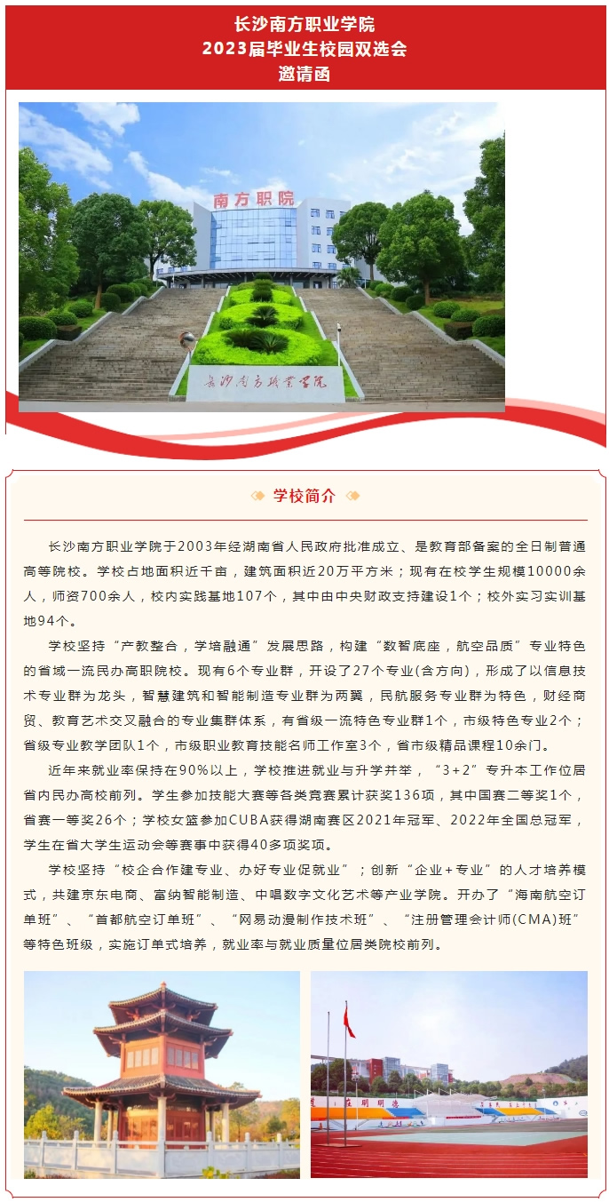 長(zhǎng)沙南方職業(yè)學(xué)院2023屆畢業(yè)生校園雙選會(huì)邀請(qǐng)函