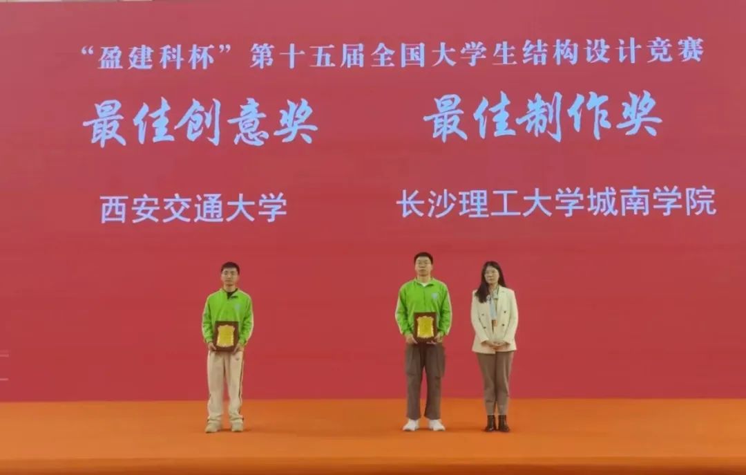 3月23日-26日,第十五屆全國大學(xué)生結(jié)構(gòu)設(shè)計(jì)競(jìng)賽在太原理工大學(xué)舉行。經(jīng)16小時(shí)現(xiàn)場(chǎng)模型制作、陳述答辯、模型加載等環(huán)節(jié)激烈比拼,長沙理工大學(xué)兩支代表隊(duì)脫穎而出包攬冠亞軍,分別斬獲特等獎(jiǎng)和一等獎(jiǎng),實(shí)現(xiàn)連續(xù)八屆蟬聯(lián)該項(xiàng)賽事國賽一等獎(jiǎng)。長沙理工大學(xué)城南學(xué)院代表隊(duì)作品榮獲大賽“最佳制作獎(jiǎng)”,長沙理工大學(xué)榮獲大賽“優(yōu)秀組織獎(jiǎng)”。